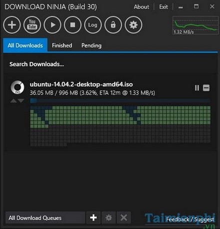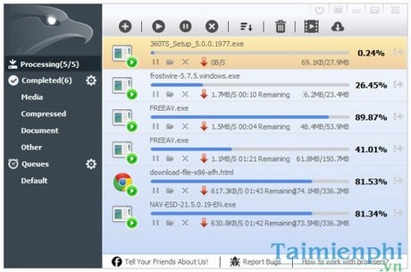 - Hỗ trợ tải đang luống, tăng tốc download, tự động kết nối lại cũng như ngắt file.