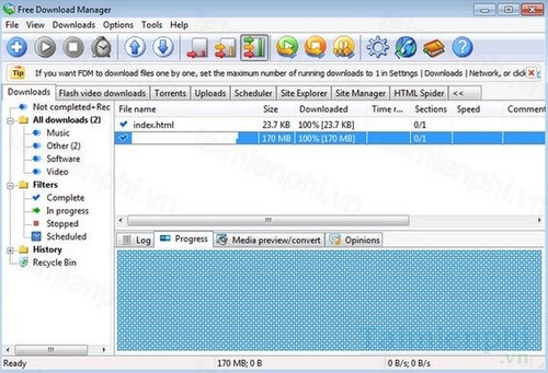- Và một số tính năng thông dụng của một chương trình hỗ trợ download như tải nhiều tập tin cùng lúc, quét virus trước khi tải, tắt máy sau khi tải, ...